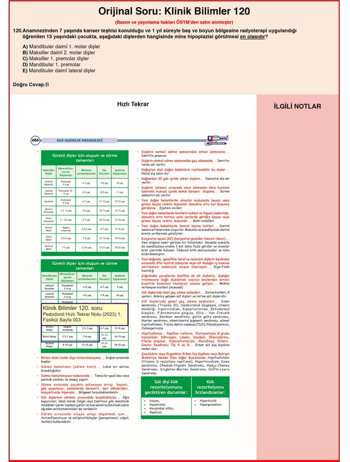 2023 DUS Pedodonti Hızlı Tekrar Notu Referanslarımız
